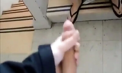 бесстыдная супер-сучка отсасывает мне на лестнице, и она так безжалостна