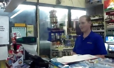 фантастическая официантка работает, не замечая, что она показывает свои забавные сумки