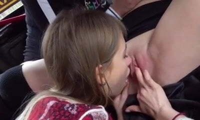 2 petites filles ont leur première orgie lesbienne en plein air lors d'un voyage universitaire