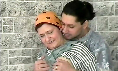 la tante de la femme de chambre chaude donne ses gros nichons au beau-fils du propriétaire de la construction