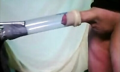 Uncut Man Sausage in Masturbation Machine with cumshot