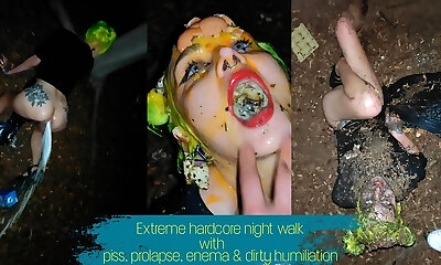 Extreme xxx night walk with piss, enema, rosebutt and dirty humiliation