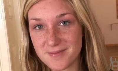 A startled Emma Evins enjoys a sexy creampie