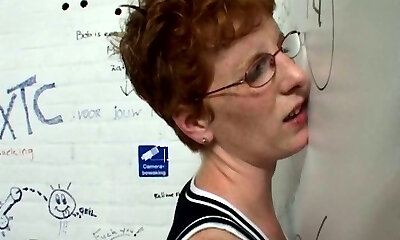 Ugly four eyed nymph sucks the dick through the gloryhole