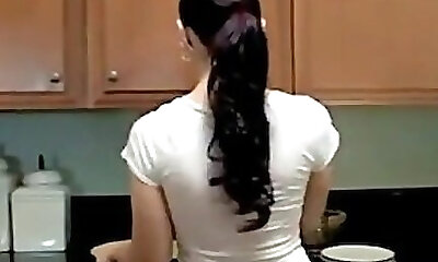 Stepson caught half nude mommy in the kitchen and pummeled her boobs and deep throat