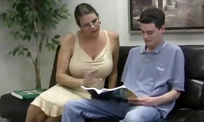 Extravagant tutor with huge bobs Diamond Kitty tempts student guy Ryan Mclane